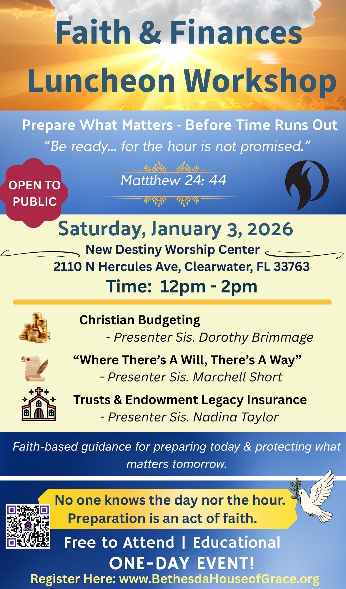 Welcome to The Bethesda House of Grace, a vibrant, Spirit-Filled Christian Community Cultural Center dedicated to spiritual growth, creativity, and fellowship.